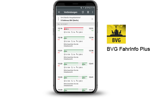 Nach Ihrer Ankunft in Berlin empfehlen wir das Informationsportal der BVG (www.bvg.de) bzw. die nebenstehende App -BVG Fahrinfo Plus-.