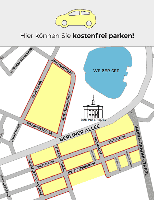 Das Parken ist im Komponistenviertel rings um die Bizetstraße kostenfrei möglich.
