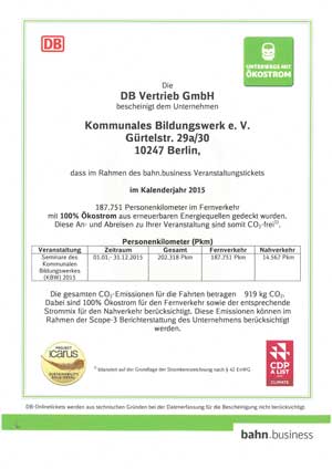 Das Bildungs- und Kulturzentrum PETER EDEL, das vom Kommunalen Bildungswerk e. V. betrieben wird, gehört zu den Sustainable Meeting-Partnern von visitBerlin. Zertifiziert wird das Bildungs- und Kulturzentrum als Eventlocation für